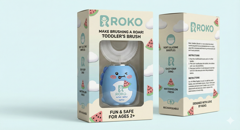 ROKO's U-shaped 360° head brushes all surfaces at once. No fussing, no fighting. Just 60 seconds of sonic vibrations and the job is done, every single time.